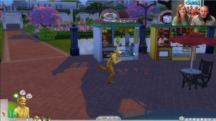 - Уличный артист. Живая статуя — это один из уличных артистов, которых вы можете встретить на улицах Сан-Мишуно. Чтобы наблюдать за ним, нужно кликнуть на него и выбрать соответствующее действие. После этого с ним доступны следующие действия: помахать, испугать, дразнить и подкинуть чаевые. Подкинув чаевые, артист-статуя подарит вам костюм золотой статуи, надев которую вы сами сможете стать таким уличным артистом и собирать чаевые. Есть два варианта золотого костюма: космонавт и ковбой;