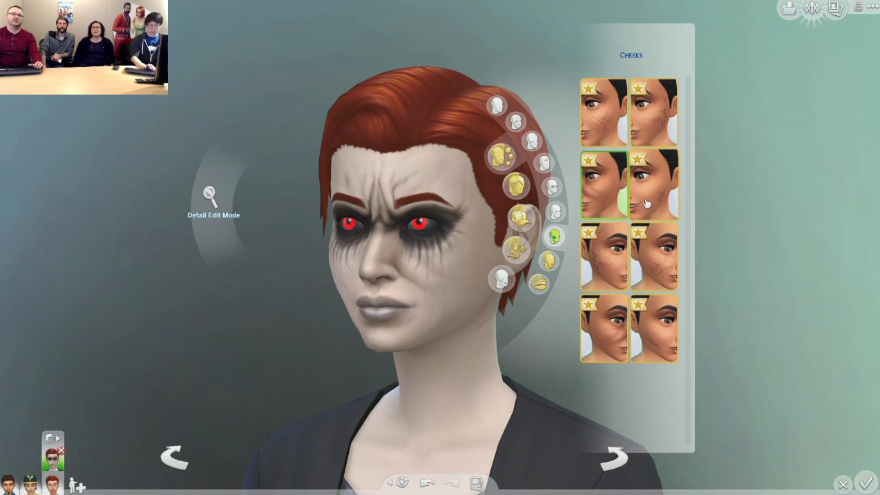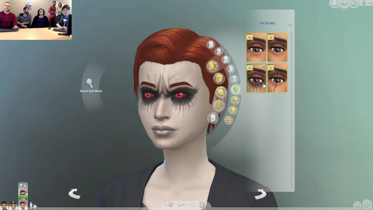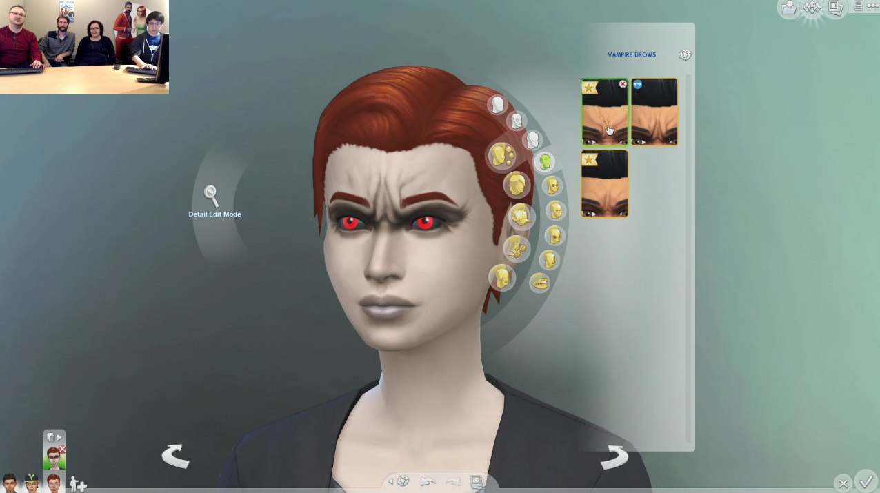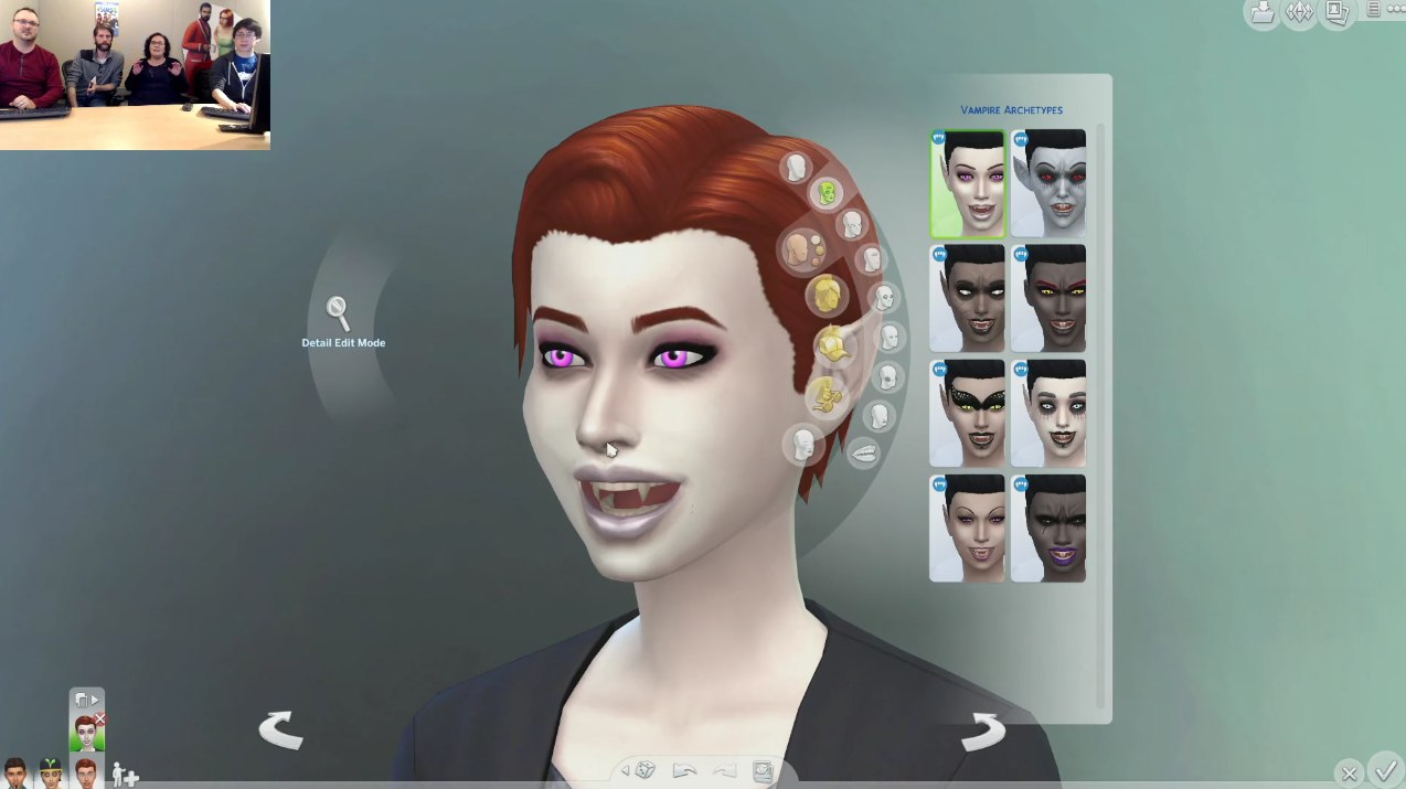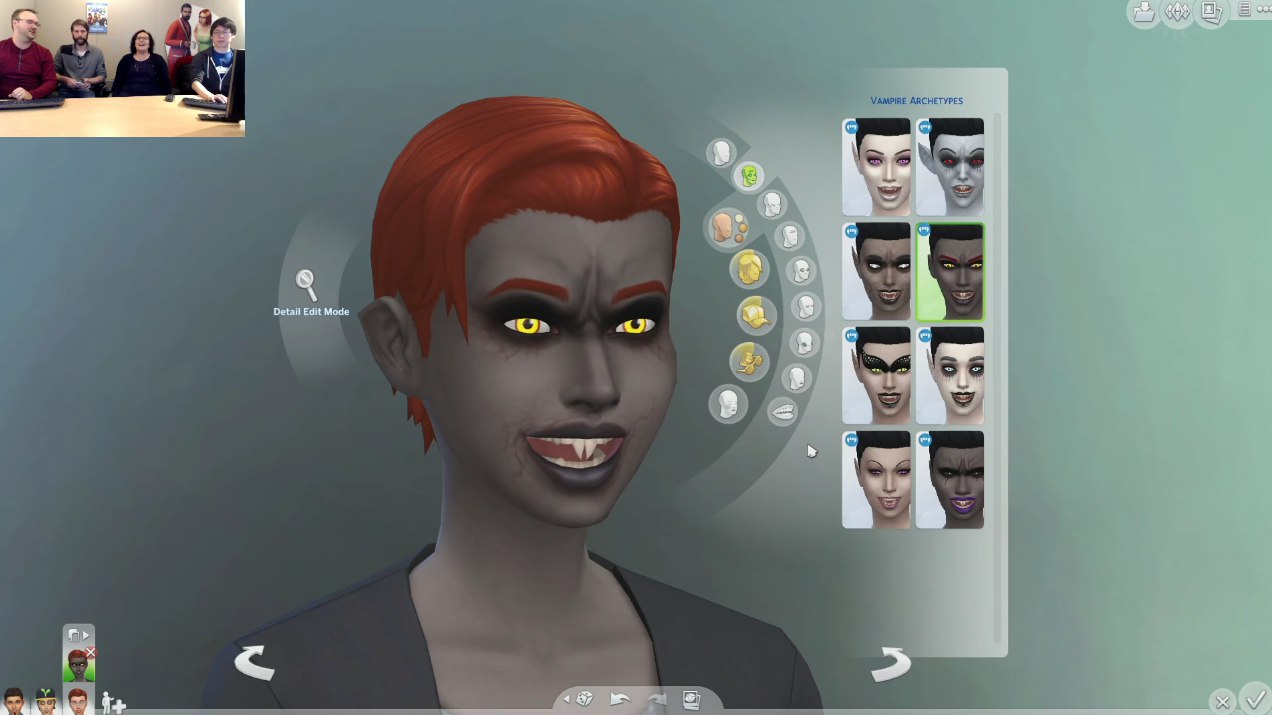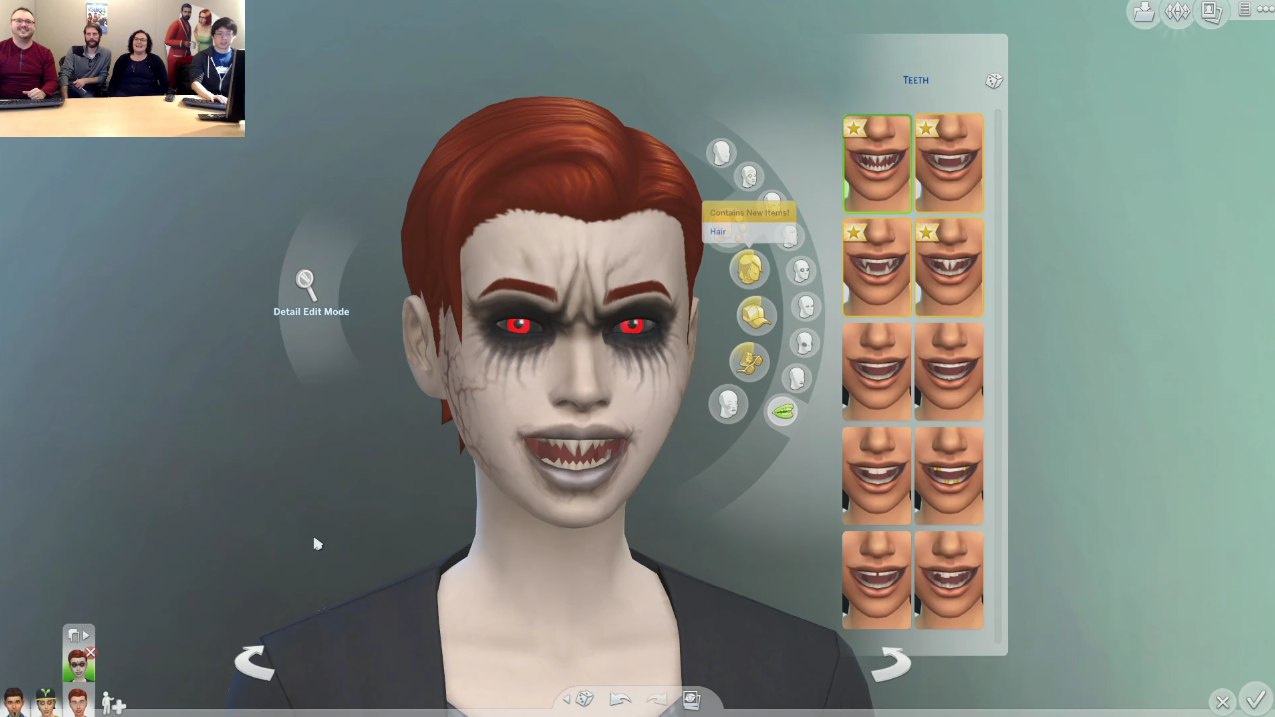 Доступно 10 новых цветов глаз, 3 брови, 3 глазницы, 4 особенности глаз, 4 детали для щек (вены, трещины), 4 детали для рта и 4 типа вампирских зубов. Всё это не является макияжем и может быть наложено поверх него. Новый раздел "Архетипы вампиров" содержит заранее подготовленные образы с использованием ранее описанных деталей.