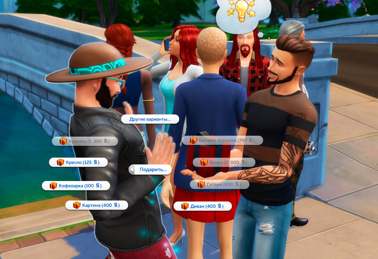 Теперь симы могут делать друг другу подарки и получать их от своих фанатов! Чтобы сделать подарок нажмите на сима > Путь к славе > Подарить и выберете подарок — данное действие улучшает дружеские отношения между симами. Поклонники вашей знаменитости также будут дарить подарки. Найти их вы можете в семейном багаже.