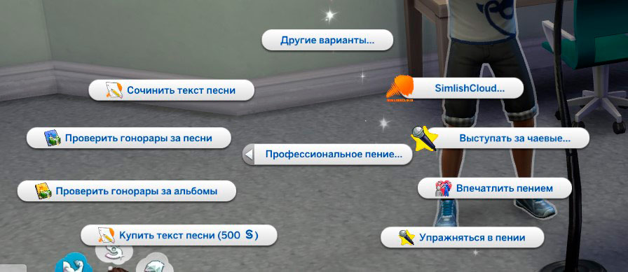 | 2 | Настало время поделиться чудесным творчеством вашего персонажа со всем миром! Новые взаимодействия: «Загрузить записанную песню», «Отвечать на комментарии в SimlishCloud», «Купить текст песни», «Впечатлить пением» + больше песен в SimlishCloud. |