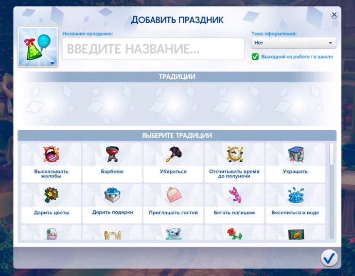 «Одной из значительных особенностей дополнения является календарь. Давайте же поговорим о нём! Календарь включает в себя все предстоящие праздники. Каждый праздник имеет традиции, при выполнении которых персонаж всё успешнее справляет его. К тому же, посмотрев прогноз погоды, симы смогут продумать план праздника наперёд. Вы также сможете увидеть расписание семьи вашего сима при просмотре календаря, в том числе расписание их работы. И, для большего возможного планирования, дни рождения симов также будут доступны на календаре. Вскрывайте бутылки нектара (для Нового Года, да-да), потому что всё теперь будет в одном месте. Теперь это распланированная игра из серии The Sims.»