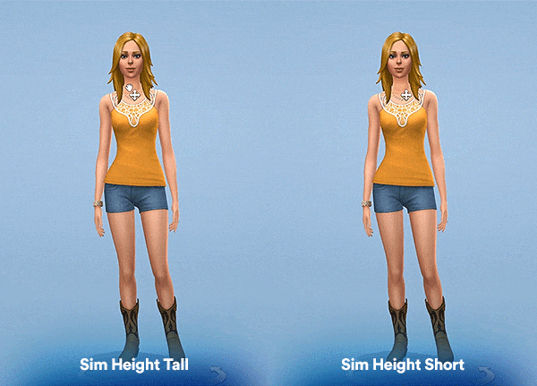 • Как и другие слайдеры роста, у этого есть проблемы с отображением. К сожалению, это не может быть исправлено, поскольку игра изначально была разработана с ограничениями роста симов;