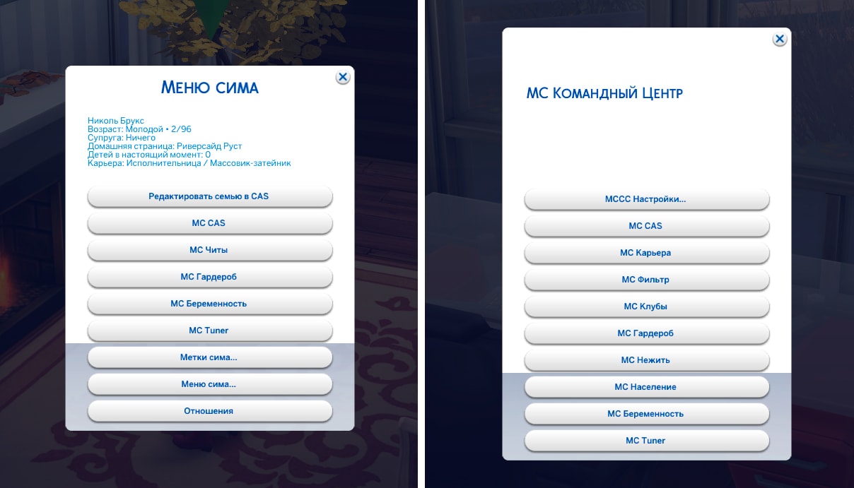 - Добавлено две новые метки: “Вступит в брак с симом того же возраста” и “Вступит в брак с симом любого возраста” (находятся в MC Беременность > Метки сима...). Они будут отменять глобальную настройку брака “Только с симом того же возраста” для указанных симов;