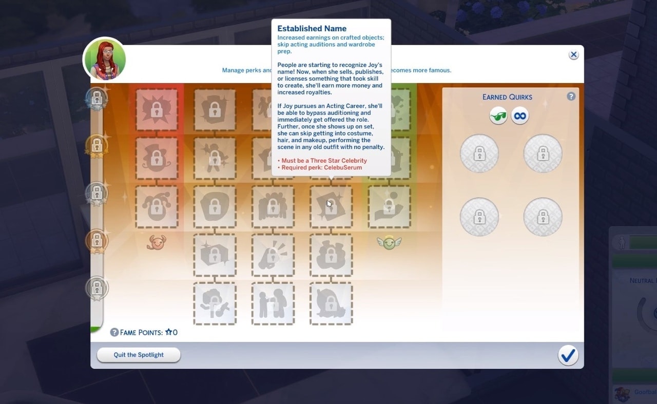 - При повышении уровня знаменитости симы зарабатывают очки славы, открывают доступ к преимуществам и получают новые привилегии вроде возможности попасть в самое популярное место в городе;