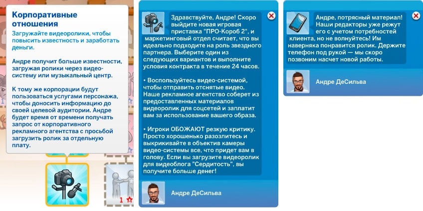 Достигнув первого уровня славы, вы сможете приобрести бонус «Корпоративные отношения», благодаря которому вашему видеоблогеру будут поступать предложения записать видео на определенную тему за отдельную плату.