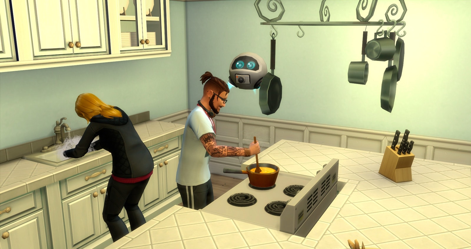 Всего на видео-станции доступно три темы, но тут вступает в силу следующий объект — дрон, который может записывать любые действия вашего или другого сима. При этом игра зачастую понимает, о чем вы хотели снять видео. Например, включив запись во время готовки, игра поймет, что это видео о кулинарии.