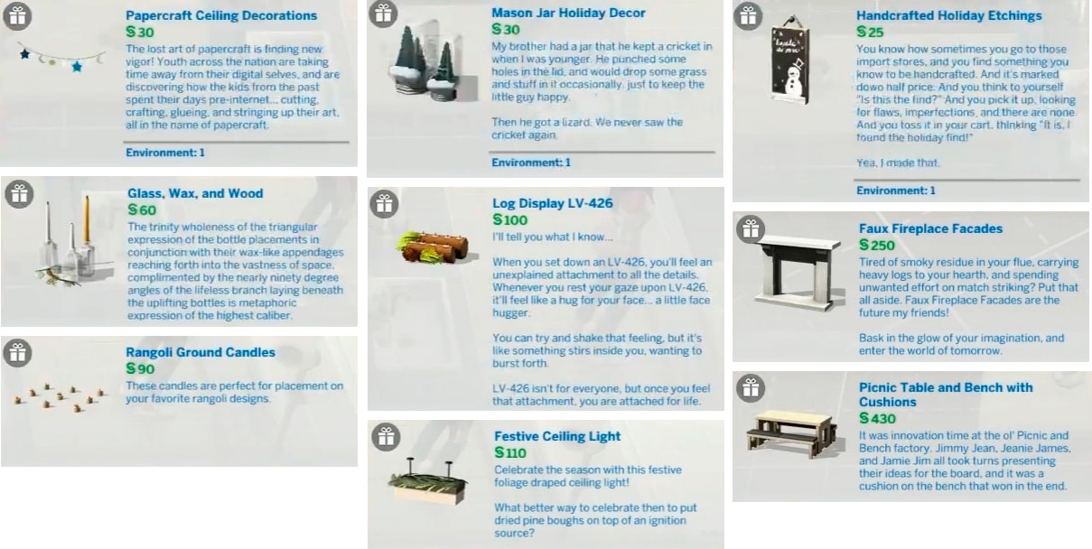 Несколько новых объектов, в том числе новые украшения