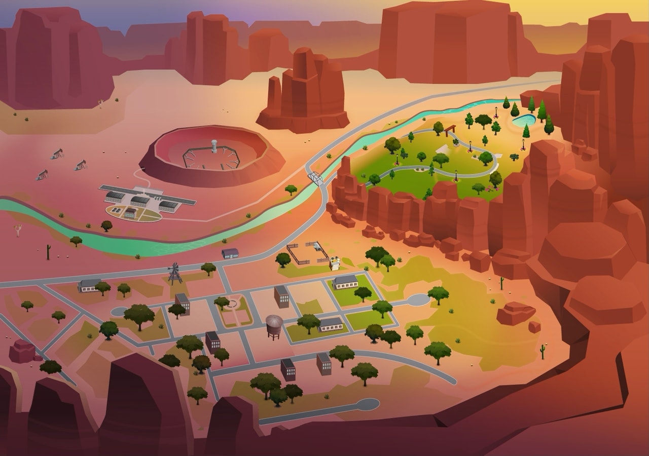 - Городок поделен на 2 района и состоит из 11 участков, которые можно редактировать и одного секретного;