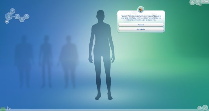 Нет вдохновения? Попробуйте создать историю в редакторе создания персонажа! При создании новой семьи или добавлении нового персонажа в уже существующую семью вы можете пройти тест, который поможет определить начальные черты характера и условия вашего сима. Благодаря новому режиму, у сима уже будет выбрана карьера, навыки и стартовый капитал! Конечно, это всего лишь дополнительная возможность, и вы сможете создавать собственные истории, как и прежде.