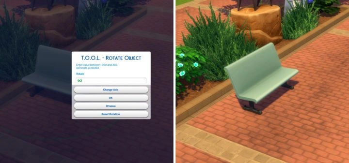 Для поворота объекта зажмите Shift, нажмите на него, выберите T.O.O.L > Rotate и в появившемся окне укажите на сколько градусов нужно повернуть объект относительно текущего значения.