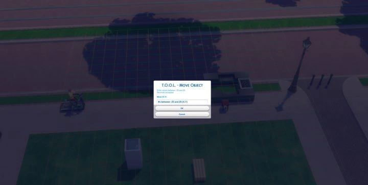 Есть и альтернативный способ перемещения объекта — с помощью изменения координат. Для этого зажав Shift нажмите на объект и выберите T.O.O.L. > Move. В появившемся окне введите на какое количество клеток переместить объект относительно текущей позиции (необходимо ввести пару чисел от -25 до 25). Примечание: при перемещении таким образом обратите внимание на сетку вокруг объекта: зеленая линия отображает ось X, а красная — Y.