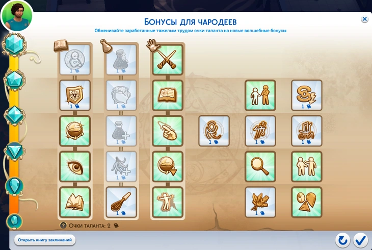 | 2 | Обнуление бонусов | Позволяет переназначить очки талантов чародея |