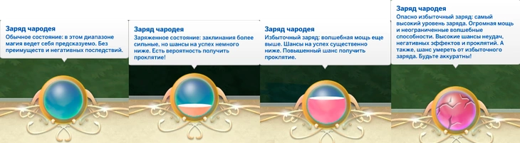 Чародеи в The Sims 4 «Мир магии» не ограничены в своих магических ресурсах: маны у них нет и подобного ей аналога тоже. Единственное ограничение – это, фактически, жизненные силы вашего подопечного. Чем чаще вы применяете заклинания, тем они становятся сильнее по мощи, но при этом становится ниже шанс их успешного наложения. Также под угрозу ставится и жизнь вашего персонажа, поскольку, чем сильнее заряд, тем выше шанс наложения проклятия или даже смерти!