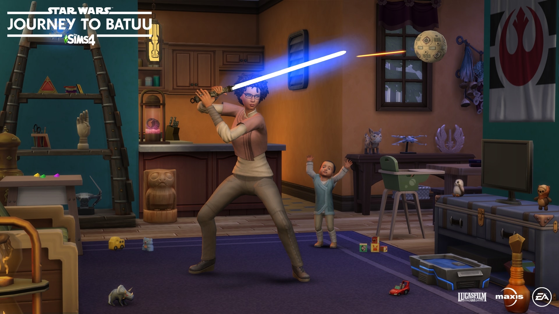 Ваши симы явно не дома. Их окружают легендарные объекты и звуки из Star Wars — от Сокола Тысячелетия и шумной кантины до своеобразных батууанских нарядов. Пообщавшись с местными инопланетянами, вы обязательно поймете, почему Батуу так отличается от других планет. Ваши симы вернутся домой не с пустыми руками: они привезут новый декор и рецепты из путешествия, научатся играть в сабакк и смогут устраивать увлекательные тренировки со световыми мечами.