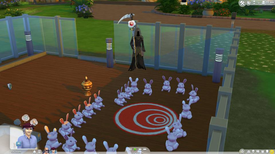 Но Смерть не ушла. Она начала болтать с игрушечными кроликами! Даже Костлявая не устояла перед их таинственным очарованием. Где-то спустя сутки, видимо, вдоволь удовлетворив свою потребность в ушастых плюшевых зверушках, Смерть испарилась, отправившись обратно в загробный мир. И вот к этому моменту я начал понимать, какая же все-таки The Sims странная игра.