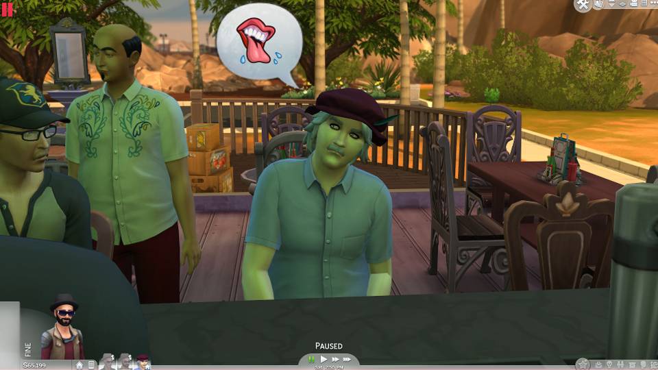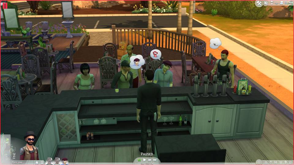 Можно ли заставить всех симов уйти из бара? Как вы знаете, в игре теперь есть многозадачность – ничто не мешает симу одновременно сидеть в планшете и общаться с другими. Придя в местный бар, где толпилось много симов, мой Злыдень заказал себе напиток и сразу же начал кого-то выводить из себя. Учитывая новые возможности, к этому диалогу начало прибавляться все больше и больше симов, а я заставлял своего персонажа все больнее подкалывать толпу и вообще говорить гадости. Я старался довести ярость симов в отношении Злыдня до максимального уровня, что в итоге и получилось – все симы в бешенстве покинули бар.