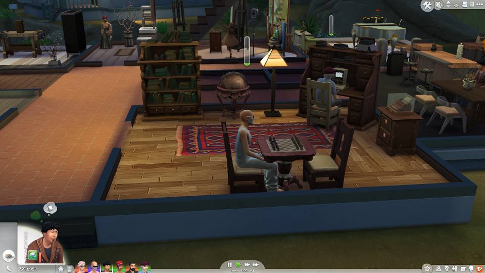 Могу ли я убить сима чистыми эмоциями? Я начинал беспокоиться за Доброго. А вдруг он умрет от переполняющих его эмоций? Поэтому я продолжил игру так: подселил Доброго с Да Винчи и молодым, современным художникам. Честное слово, я видел дьявольскую улыбку на лице у Да Винчи, когда он увидел художников (ведь он крал картины). Бьюсь об заклад, в его симо-голове наверняка промелькнула мысль «Джекпот!».