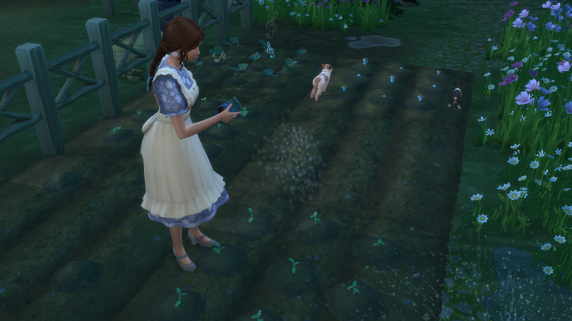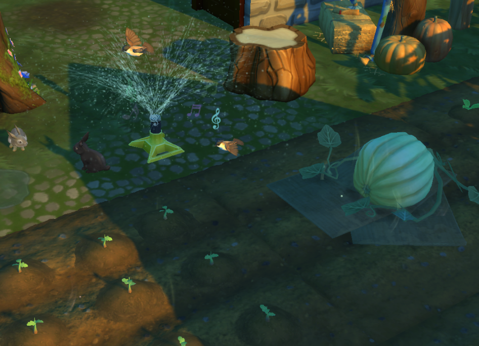 Вы можете поливать растения вручную, но на этом способы не заканчиваются. При наличии дополнения «Времена года» с поливом вам может помочь автоматический разбрызгиватель, а также дождь!