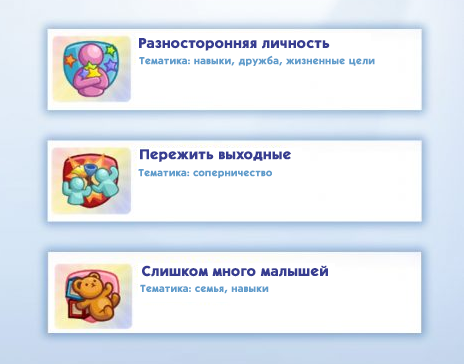 - Требования: семья из трёх малышей и одного персонажа возраста “молодой” или старше.