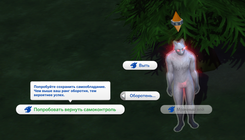 Открыв сопособность "Мрачный вой" при нажтии на вашего сима в категории "Оборотень" появится соответствующее действие, после выбора которого ваш персонаж сможет разразиться мрачным воем, чтобы успокоиться и снизить уровень ярости.