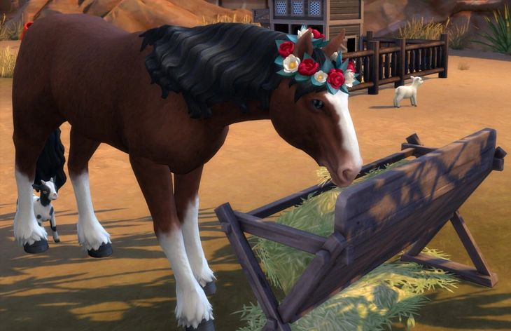 Для восполнения потребности в питании вы можете кормить её с руки (или из бутылочки в случае жеребят), однако гораздо удобнее, если лошадь сама будет заниматься своим пропитанием. С этим вам поможет кормушка, а также не лишним будет приобрести кусты бурьяна. С новым испытанием участка "Дикий бурьян" ваши лошади точно не останутся голодными!