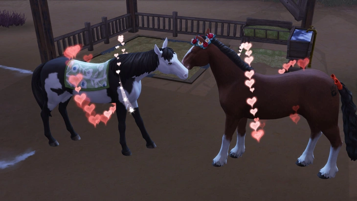 После того, как лошади узнают друг друга получше, вы сможете поощрить их к спариванию. При успешном действии вокруг двух обнюхивающихся лошадей появятся сердечки.