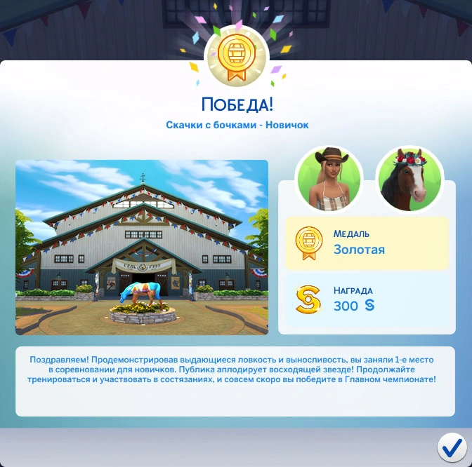 Для участия в Главном чемпионате ваша лошадь должна победить во всех состязаниях уровня "мастер"!