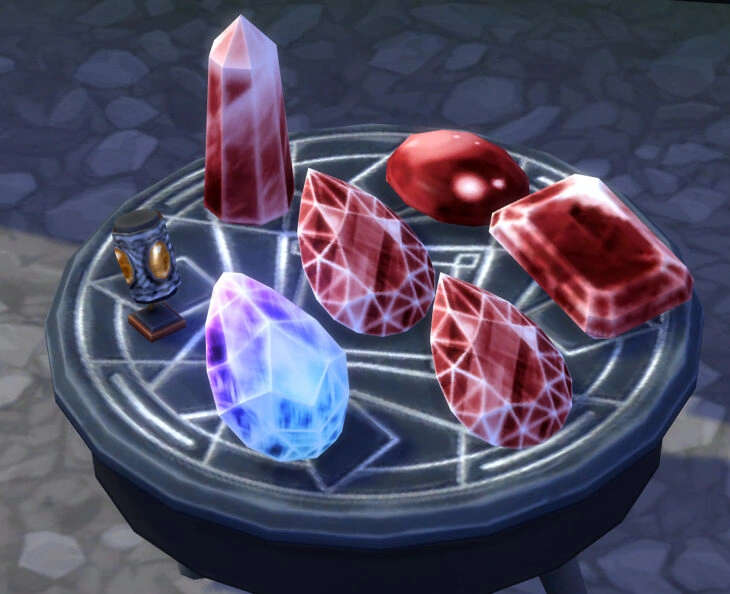 Особенностью камней в «The Sims 4: Сияние самоцветов» является возможность зарядить камни и пользоваться их полезными свойствами! Теперь камни имеют пользу не только в божественной короне из дополнения «The Sims 4: Путь к славе», но и в простом каталоге! Для этого необходимо приобрести специальную подставку для зарядки самоцветов, расположить её на улице или балконе, где будет доступ к лунному свету, и дождаться времени с 19:00 до 7:00!