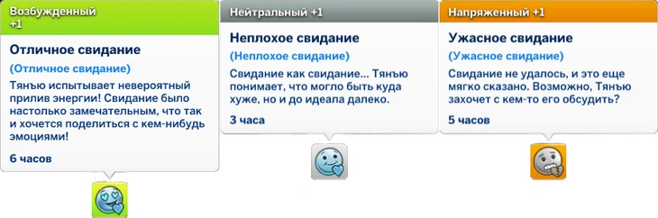 Также в отличие от успеха свидания у персонажа могут появиться различные мудлеты. Не всё всегда проходит хорошо — и это нормально!