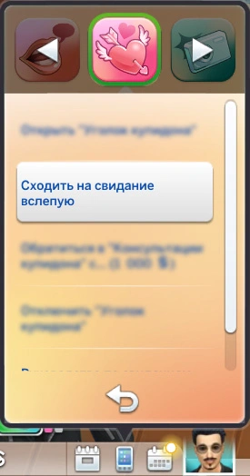 Свидания вслепую организуются с помощью приложения "Уголок купидона". Откройте приложение на телефоне и выберите действие "Сходить на свидание вслепую".