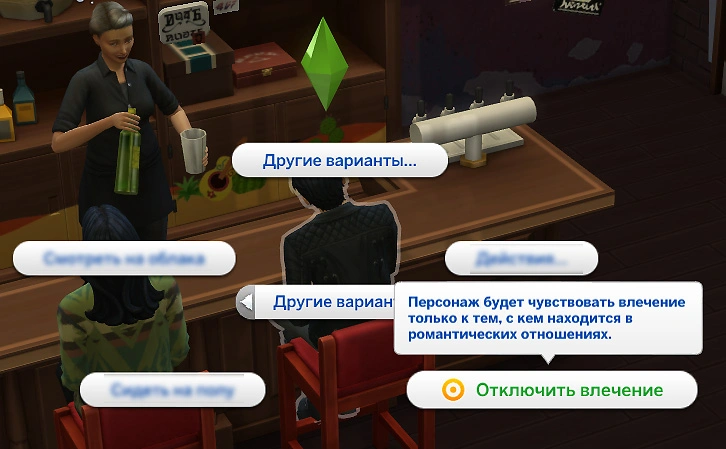 Если вы уже нашли свою вторую половинку и не нуждаетесь в поиске других партнёров, вы можете отключить влечение у своего персонажа ко всем, кроме своего партнёра! Для этого нажмите на него и выберите действие "Отключить влечение". Вы всегда можете повторить это действие и включить влечение обратно, если у вас появится такая потребность!