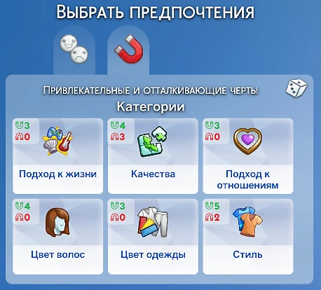 Вы можете в любой момент изменить привлекательные и отторгающие черты в редакторе создания персонажа! Для этого откройте панель симологии, нажав соответствующую клавишу или Y, пролистайте до раздела "Предпочтения" и нажмите клавишу "Открыть редактор создания персонажа".