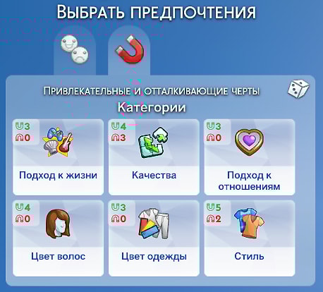 Предпочтения, отвечающие за формирование влечения и отторжения теперь располагаются в новой вкладке в виде магнита рядом с панелью обычных предпочтений. Для персонажей можно указать внешние и внутренние черты, которые они находят привлекательными и отталкивающими в других персонажах! Всего можно выбрать 50 черт.