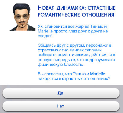 Если ваши персонажи совершили что-то, что позволит задать новую динамику отношений, вы получите уведомление об этом. Вы имеете право отказаться, если это не вписывается в запланированный вами сюжет!