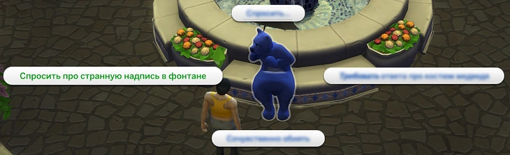 Загляните в фонтан, используя действия "Искать подсказки на фонтане". Гномы оставили следы и тут, но надпись едва можно разобрать.