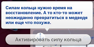 Вы не можете пользоваться силой кольца вечно! Придётся подождать 10 игровых часов прежде, чем вы сможете активировать его повторно!