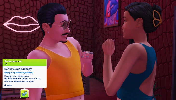 Чувствуете, что интимная жизнь ваших персонажей стала скучной? Самое время всё разнообразить с помощью сундука с костюмами "Амор" от семейства Гарсия! Найти его вы сможете в категории "Увлечения и навыки", разделе "Отдых"! Также его можно приобрести в романтических подарках с помощью телефона.