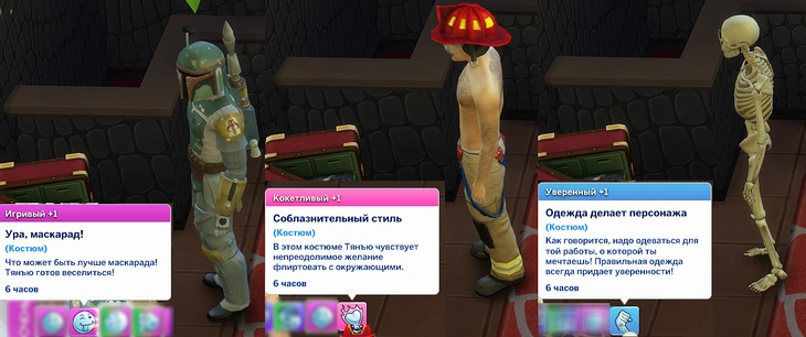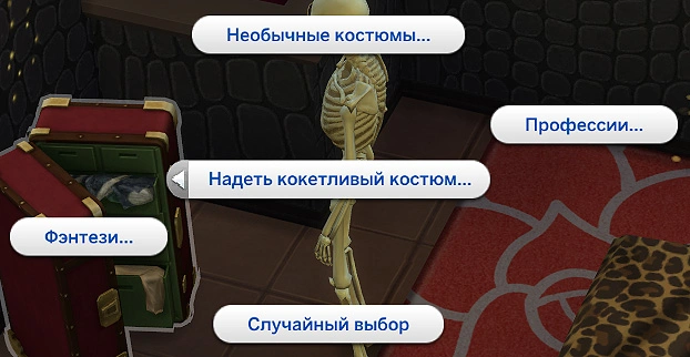 После этого персонажи (или персонаж) отправятся к сундуку с костюмами и переоденутся. Если ваш персонаж находится в кокетливом костюме, то вы можете выбрать действие "Соблазнить с помощью костюма" в разделе "Флирт"!