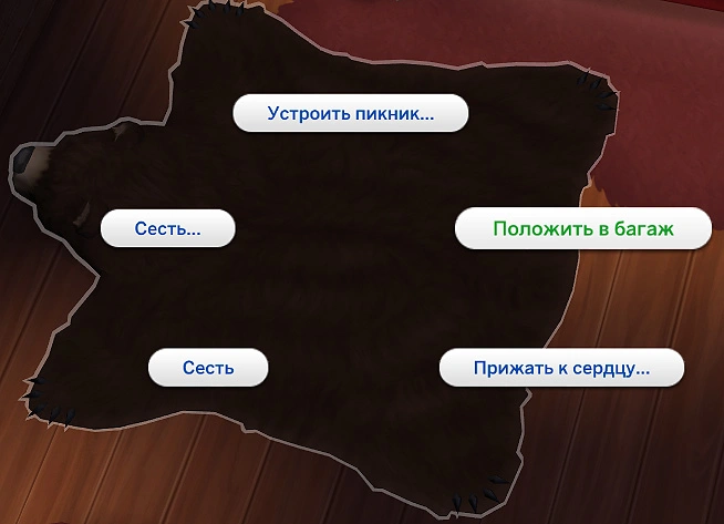 Чтобы взять плед с собой, его необходимо поместить в багаж с помощью действия "Положить в багаж" или перетащить инструментом "Рука", если вы находитесь на домашнем участке. После этого вы готовы отправляться на пикник!