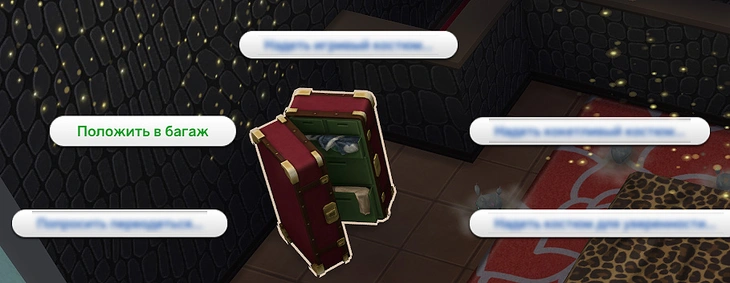 Сундук является портативным! Если вы хотите попрактиковаться в переодевании где-то вне дома, то просто перетащите сундук в багаж персонажа с помощью инструмента "Рука" или нажмите на него и выберите действие "Положить в багаж"!