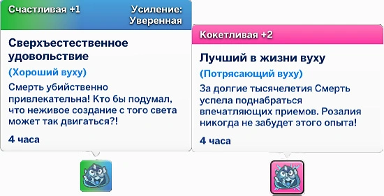 При вуху со Смертью ваш персонаж получит особенные мудлеты. Всё-таки у неё было много времени, чтобы набраться убийственного опыта!
