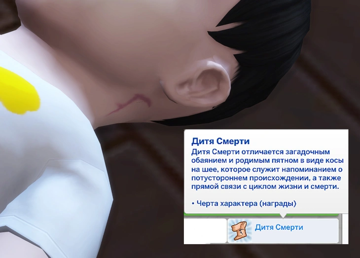 Если персонаж женского пола смог зачать ребёнка со Смертью и забеременеть, то родится особенный ребёнок. Когда он станет младенцем, то на его шее будет красоваться отметина в виде косы, а в чертах характера будет отображаться то, что он является ребёнком Смерти.