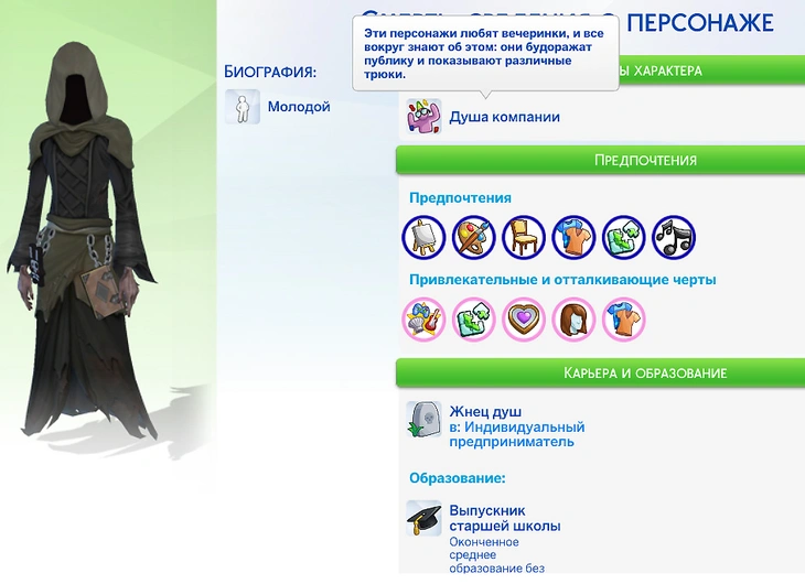 Если у вас установлено дополнение «The Sims 4: Стрелы купидона», то система привлекательности также будет распространяться на Смерть. Привлекающие и отталкивающие черты выбираются случайным образом, поэтому не удивляйтесь, если Смерть будут привлекать персонажи с ярко-розовыми волосами!