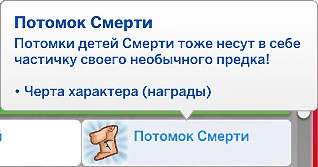 Если дети Смерти впоследствии заводят детей с кем-то ещё, то их дети получают черту Потомок Смерти. Это работает в том числе, если завести ребёнка из пробирки.