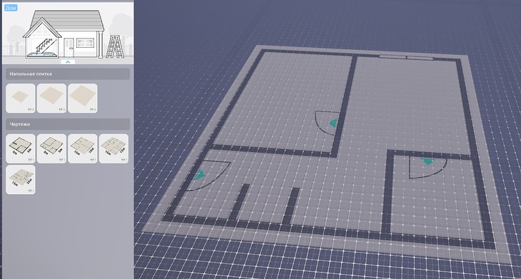 В разделе "Напольная плитка и чертежи" можно обнаружить категорию “Чертежи”, в которой представлены разметки комнат с указанием метража.