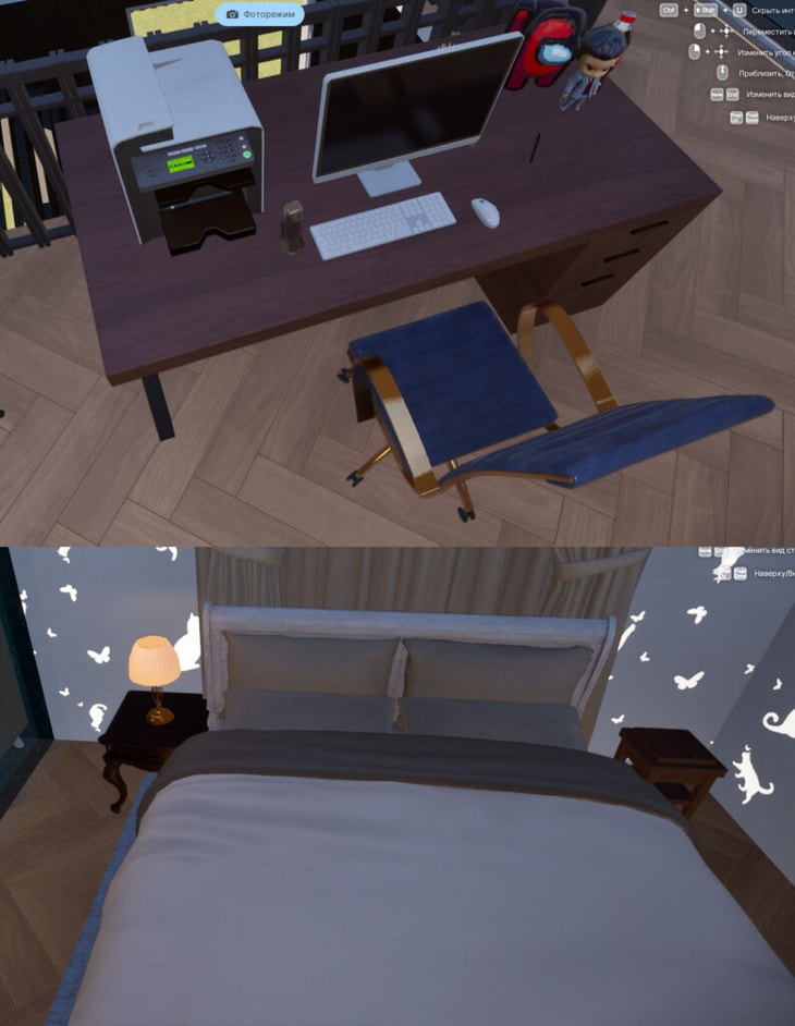 Стоит отметить немного странные пропорции у объектов в игре. Столешницы компьютерных столов слишком массивные, в то время как прикроватные декоративные столики выглядят миниатюрными на фоне огромной кровати.