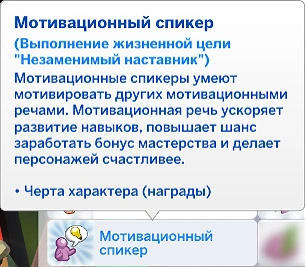 С наставничеством связана жизненная цель из категории знаний “Незаменимый наставник”! Наградой за её выполнение является черта характера “Мотивационный спикер”, которая позволяет толкать мотивационную речь: она ускоряет развитие навыков, повышает шанс заработать бонус мастерства и делает персонажей счастливее.