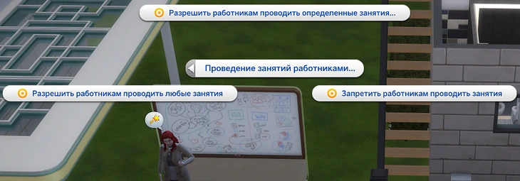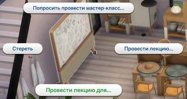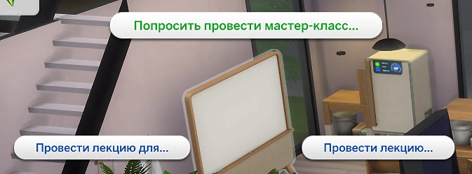 Если вы находитесь на участке малого бизнеса, вы можете нажать на персонажа или маркерную доску и выбрать действие “Попросить провести мастер-класс”!