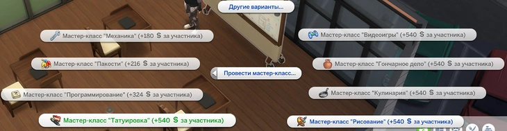 Чтобы провести мастер-класс в «The Sims 4: Любимое дело», вам потребуется достаточный уровень навыка, малый бизнес, маркерная доска и минимум три объекта, связанных с изучением навыка. Ниже мы приведем полную таблицу навыков, в том числе из DLC, и необходимых для них объектов. Число в скобочках у объекта — необходимое количество, отличное от трёх.