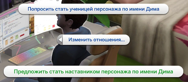 Аналогично тому, как персонаж может стать чьим-либо учеником, точно так же можно стать и наставником! Выберите подходящего ученика, перейдите в категорию “Отношения”, раздел “Изменить отношения” и действие “Предложить стать наставником”.